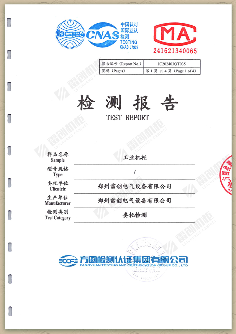 雷創(chuàng)電氣:工業(yè)機(jī)柜外殼防護(hù)等級(IP55)檢測報(bào)告